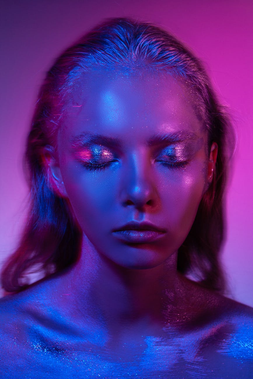 woman with glitters on face and body